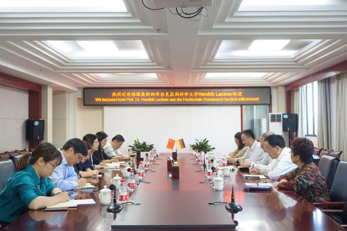 Wang Qidong begrüßte Prof. Dr. Lackner herzlich und bedankte sich für seine kontinuierlichen Bemühungen zur Förderung der Zusammenarbeit zwischen der Universität Hefei und der Hochschule Osnabrück. In den letzten Jahren haben beide Hochschulen gemeinsam drei chinesisch-deutsche Symposien zur anwendungsorientierten Hochschulbildung auf höchstem Niveau veranstaltet und erfolgreich neue Programme für die internationale Zusammenarbeit beantragt, was zu einer Vertiefung des Austauschs und der Zusammenarbeit im Bildungsbereich führte.