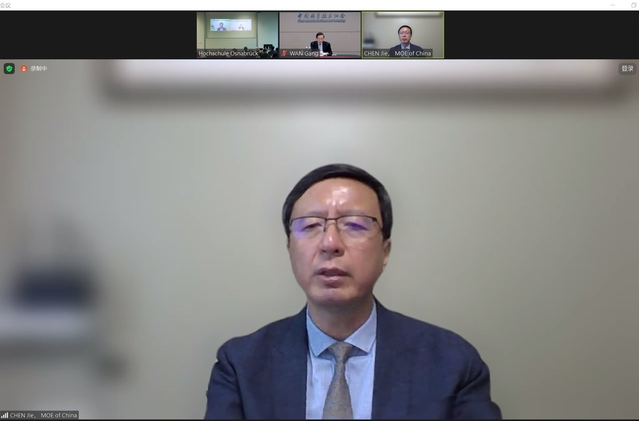 Chen Jie hoffte, dass die deutsch-chinesische Zusammenarbeit auf dem Gebiet der anwendungsorientierten Hochschulbildung den Zeitgeist erfassen und die potenzielle Zusammenarbeit erschließen sollte. Die soziale Grundlage müsse weiterentwickelt werden, um die Zusammenarbeit zu erweitern, und die gemeinsame wirtschaftliche Zusammenarbeit sollte die Herausforderungen bewältigen. Er hoffte auch, dass das 16. Symposium der chinesisch-deutschen anwendungsorientierten Hochschulausbildung ein neuer Anfang für die zukünftige Zusammenarbeit sein werde und dass die Bildung eine aktivere Rolle bei der Entwicklung der Beziehungen zwischen den beiden Ländern spielen könne.